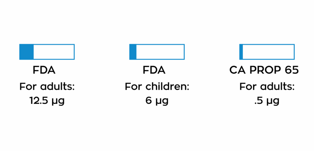 The FDA and CA Prop 65 have lead limit thresholds.